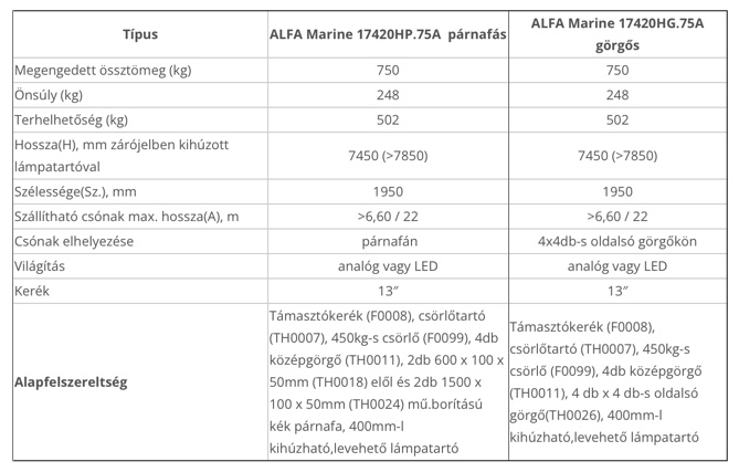 ALFA Marine 17420 csónakszállítók 6,60m/22″ lábig